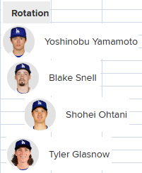 先発は、この4人。 (大谷翔平は、野手人数でカウントする。)