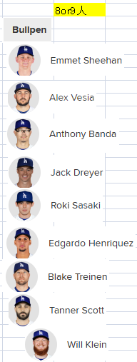 また、地区シリーズからは、カーショーも登録すると思うので、その時は、タナー・スコットを外すかな。