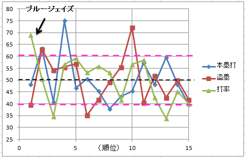 ブルージェイズは、打率が非常に高いが、驚いたことに、本塁打は平均レベルだ。 盗塁は最低レベル。