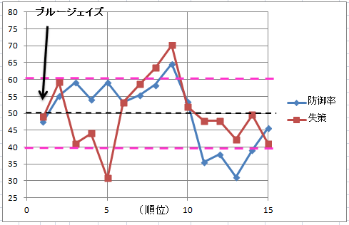 ブルージェイズは、投手力は平均ちょっと下で、失策も含めた守備力は平均ちょっと下のレベルと言える。