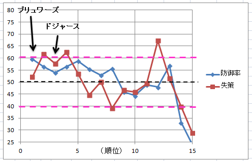 ドジャースは、防御率がまあまあ高く、失策も平均より上で、及第点の守備力と言えよう。